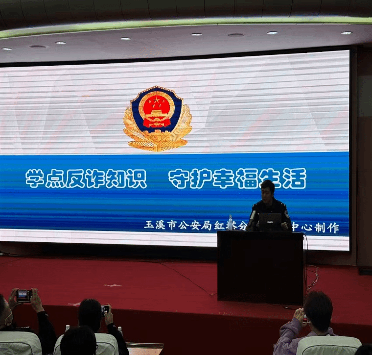 2025年12月4日,玉溪师范学院体育学院在校图书馆多元学术报告厅举办了以“防范于心·反诈于行”为主题的反诈知识宣传讲座。本次讲座在体育学院辅导员吕刚老师、李方辉老师的组织下,共有200余名师生参加,学院还特别邀请了玉溪市公安局反诈中心的李建雄警官为学生进行现场授课,旨在提升学生的防诈骗意识,营造安全和谐的校园环境。