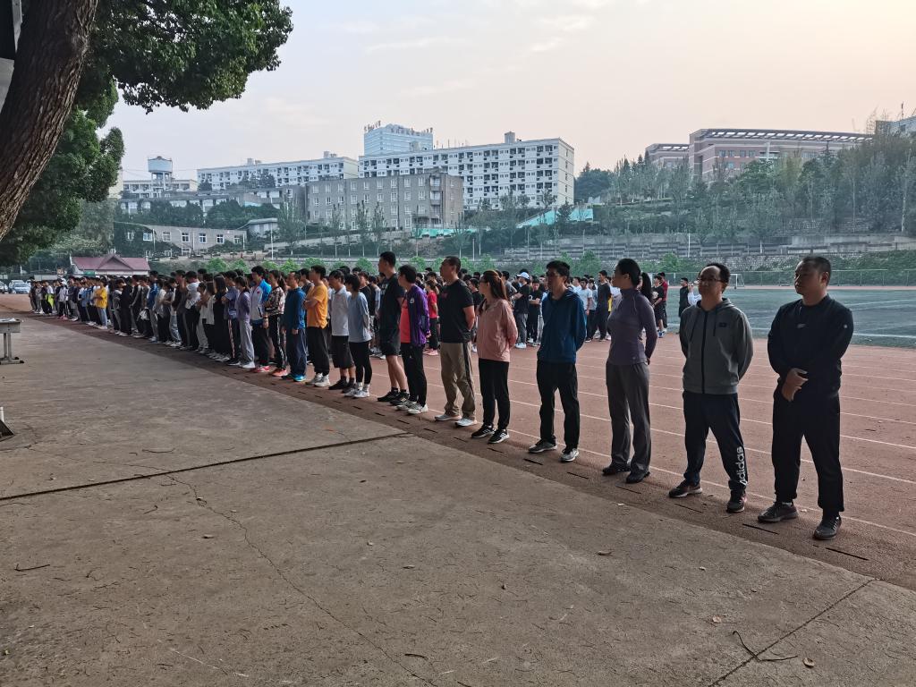 2021年4月26日上午,体育学院在田径场召开“五一”假期安全教育大会,体育学院全体辅导员、班主任和在校学生参会,会议由学院党委书记杨志龙主持。