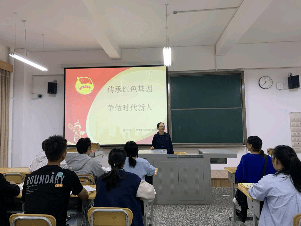 为深入理解中国共产党人的初心与使命,重温党领导人民进行革命、建设、改革和发展的伟大历史,进一步增强团员的凝聚力和团组织的向心力,2021年10月14日晚上,“传承红色基因,争做时代新人”主题团课于13教110教室顺利开展。我院全体团支部书记参加了本次团课。本次团课由我院团委书记徐广艳老师进行授课。
