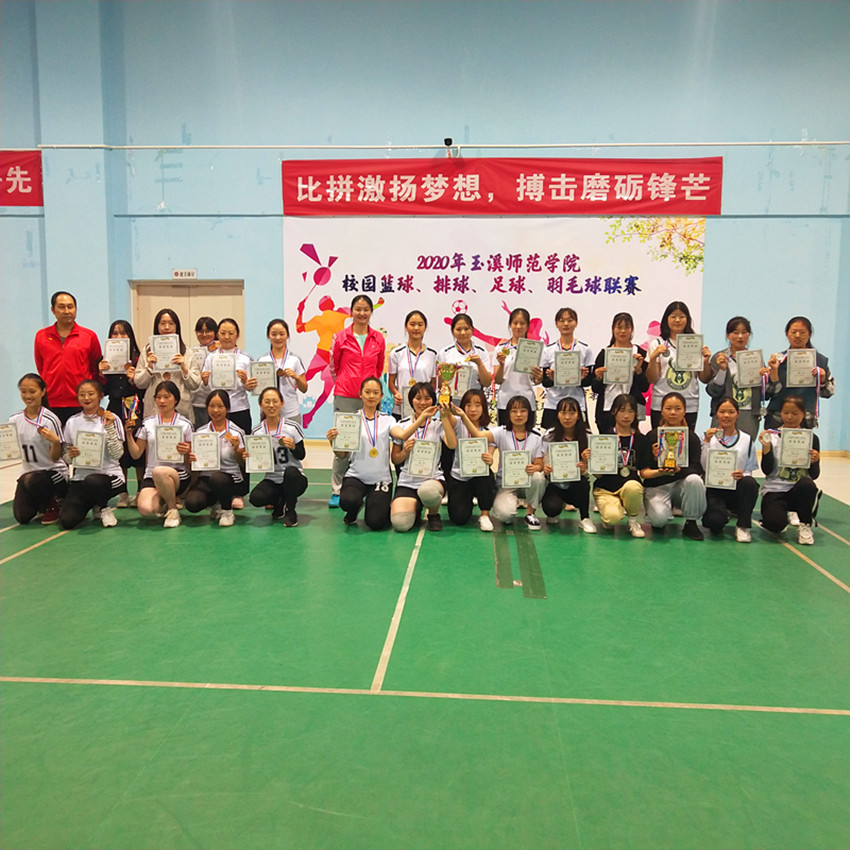 2020年11月12日,玉溪师范学院校园排球、羽毛球联赛闭幕式及颁奖典礼在羽毛球馆隆重举行,颁奖典礼由体育学院学生罗志宇主持。出席本次闭幕式的领导、老师有:学生处处长张春霞、体育学院党委书记杨志龙、体育学院党委副书记董丽波、体育学院副院长雷小明、公共体育教研室主任初立伟、体育学院教师李兵、董诗稳老。各位领导和老师为各项目获胜同学、队伍颁奖,并合影留念。