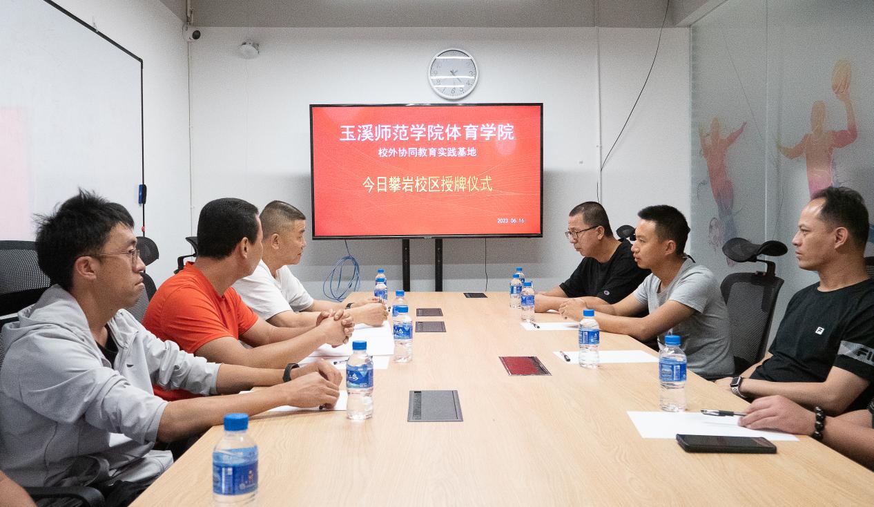 2023年6月16日下午,玉溪师范学院体育学院与云南今日攀岩体育服务有限公司举行协同教育实践基地共建仪式。玉溪师范学院体育学院院长聂锐新、代理教学副院长杨晨飞、辅导员董诗稳、教师周俊一行四人前往云南今日攀岩体育服务有限公司万动汇攀岩馆参加本次共建仪式。云南今日攀岩体育服务有限公司总经理辛江、副总经理崔喆昆,以及公司各板块负责人出席了本次仪式。共建仪式由云南今日攀岩体育服务有限公司崔喆昆主持。