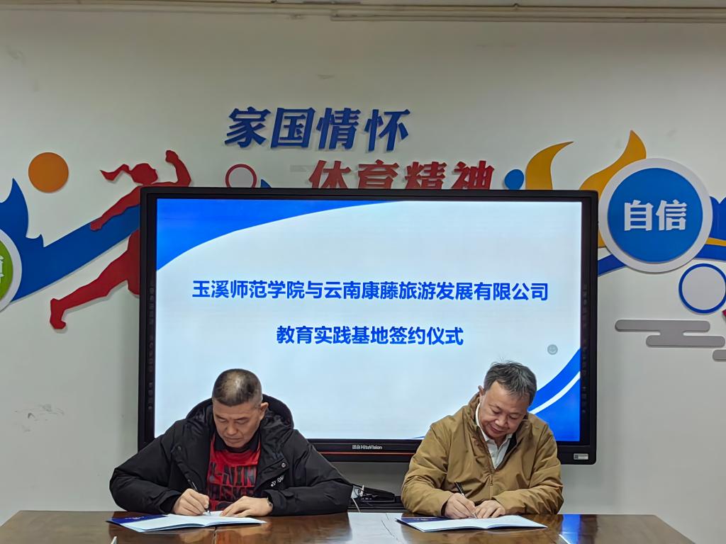 2023年12月6日,玉溪师范学院与云南康藤旅游发展有限公司协同教育实践基地签约仪式在玉溪师范学院体育学院举行。