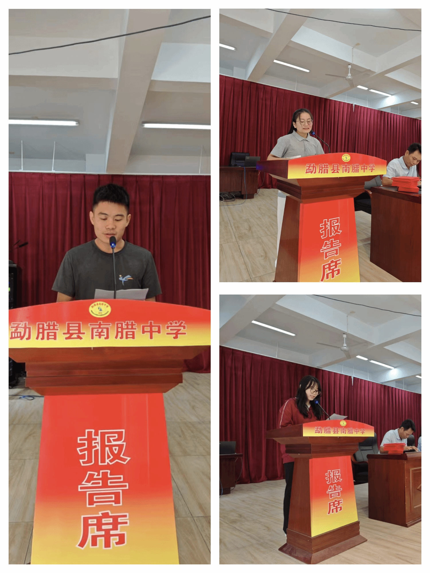 玉溪师范学院支教生李朝山(体育学院)、杨益欣(美术学院)、吴妃(音乐学院)三位支教生代表驻点学院发言致谢勐腊县教体局各领导及驻点学校老师的协作与照顾。