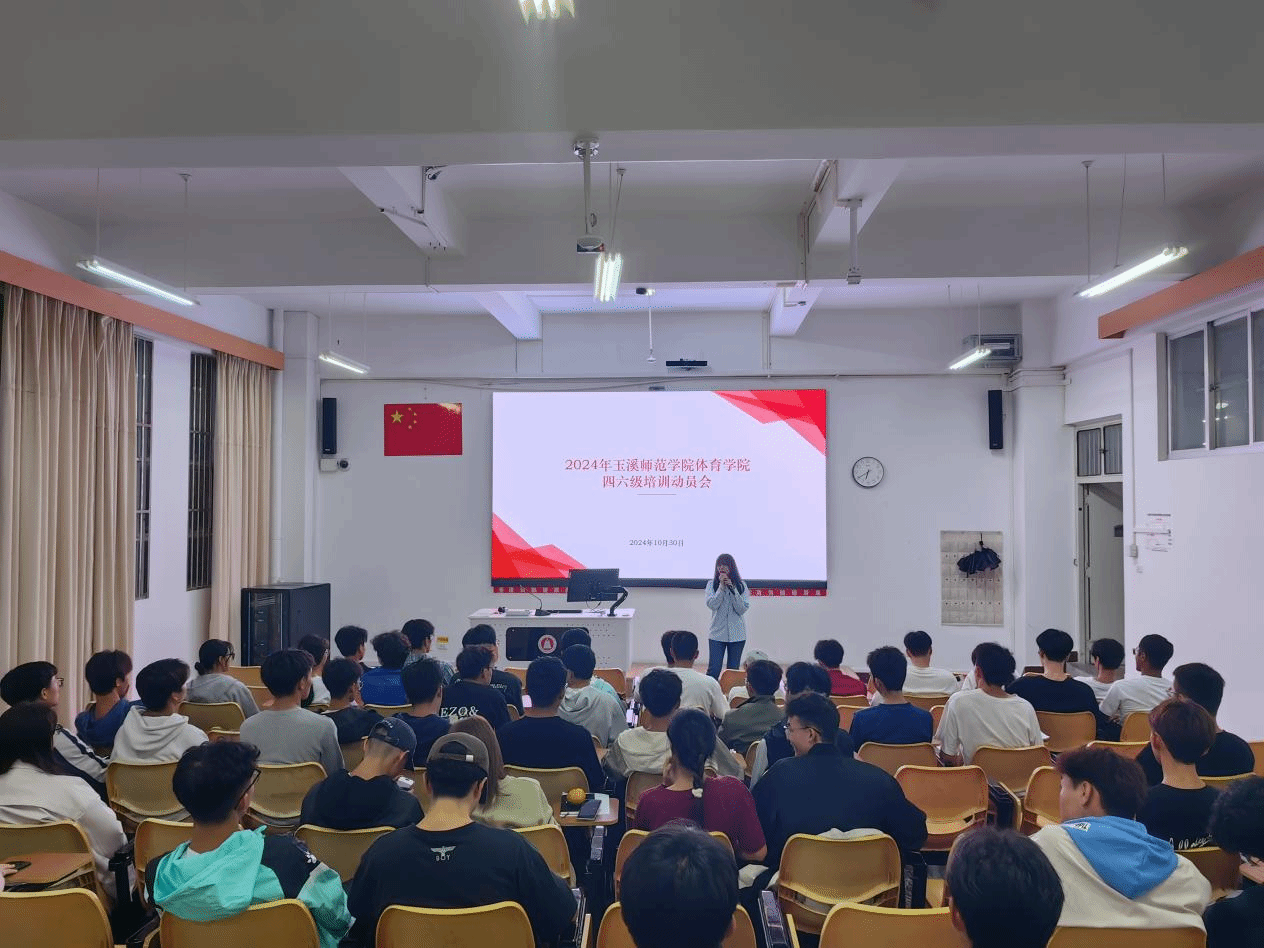 2024年10月30日,玉溪师范学院体育学院在14教103教室召开2024年四六级培训动员会。此次会议旨在帮助2023级和2024级体育学院的学生更好地认识四六级考试的价值,明确其与考研之间的紧密联系,并为学生提供有效的备考指导。会议邀请海天培训陈李溪老师担任主讲嘉宾,体育学院副院长杨晨飞主持,共有105名学生参加了此次动员会。
