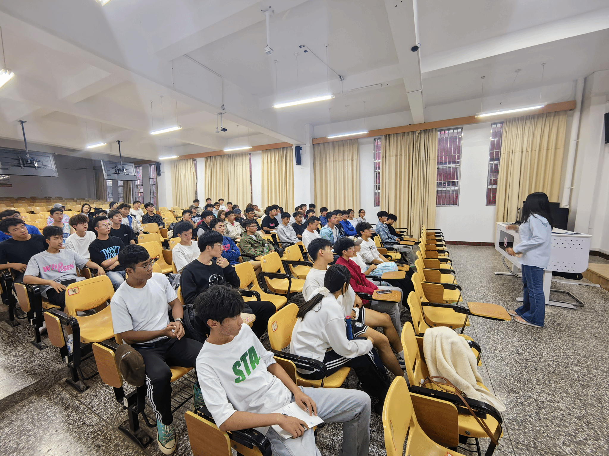 随后,陈李溪老师围绕“四六级考试的价值与意义”这一主题展开了详细的讲解。她从四六级考试内容、考试形式等多个方面进行了深入的剖析,使同学们对四六级考试有了更加全面和深入的了解。在谈到“四六级考试与考研之间的关系”时,陈李溪老师结合多年的培训经验,通过具体的数据和案例,向同学们分析了四六级考试不仅是考研英语的基础,也是提升考研英语成绩的有效途径。通过备考四六级,同学们可以夯实英语基础,提高英语应用能力,为将来的考研英语打下坚实的基础。