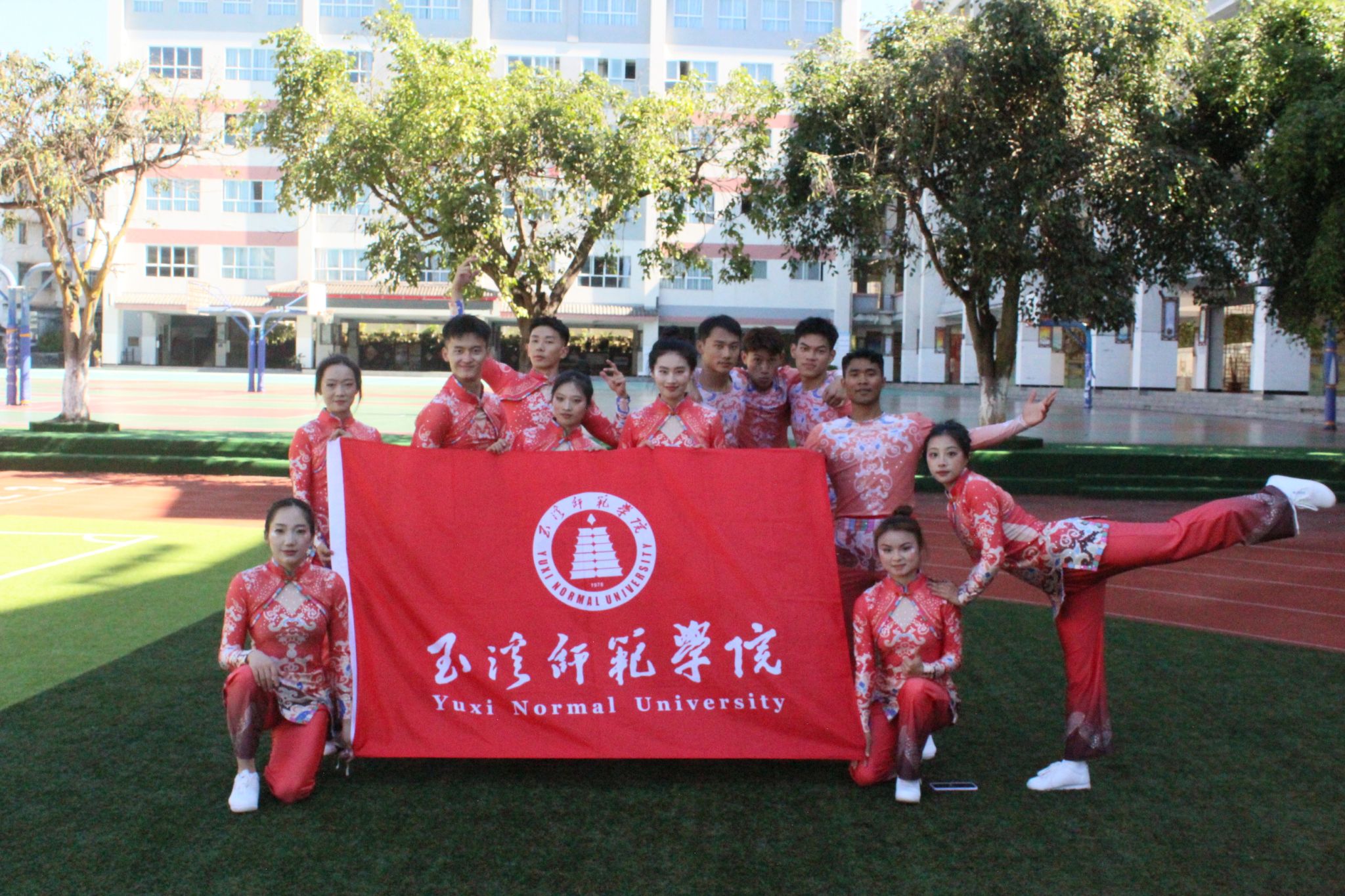 玉溪师范学院代表队共参加三个项目角逐,在这比赛的背后,离不开学院领导对队员们的关心和支持,更离不开教练董丽波老师的悉心教导,一次次的扣动作重复排练,创编队形等复杂的过程,以及队员们辛苦的付出坚持不懈的精神。最终荣获健身健美操自编动作(有氧健身操)第一名,《2020版全国大学生街舞推广套路》Locking第一名,民族健身 《同心共筑中国梦》第二名。