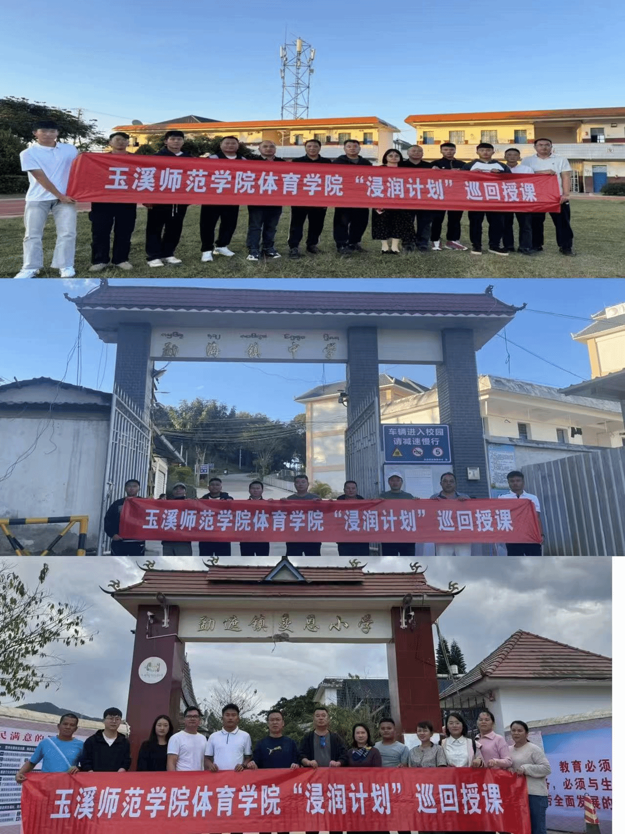 在12月16日至12月17日这段时间内,得益于勐海县教育体育局的积极协调,以及相关驻点学校和非驻点学校的大力支持与配合,体育学院驻点教师张雪峰带领着6名支教学生,成功地在勐遮镇曼恩小学、勐混镇曼蚌小学、勐混镇中学、勐海镇中学这四所学校进行了8次巡回授课。这些巡回授课不仅为支教学生提供了展示和锻炼自己教学能力的平台,也为当地学生带来了新鲜的教学内容和方法,促进了教育的交流与共享。