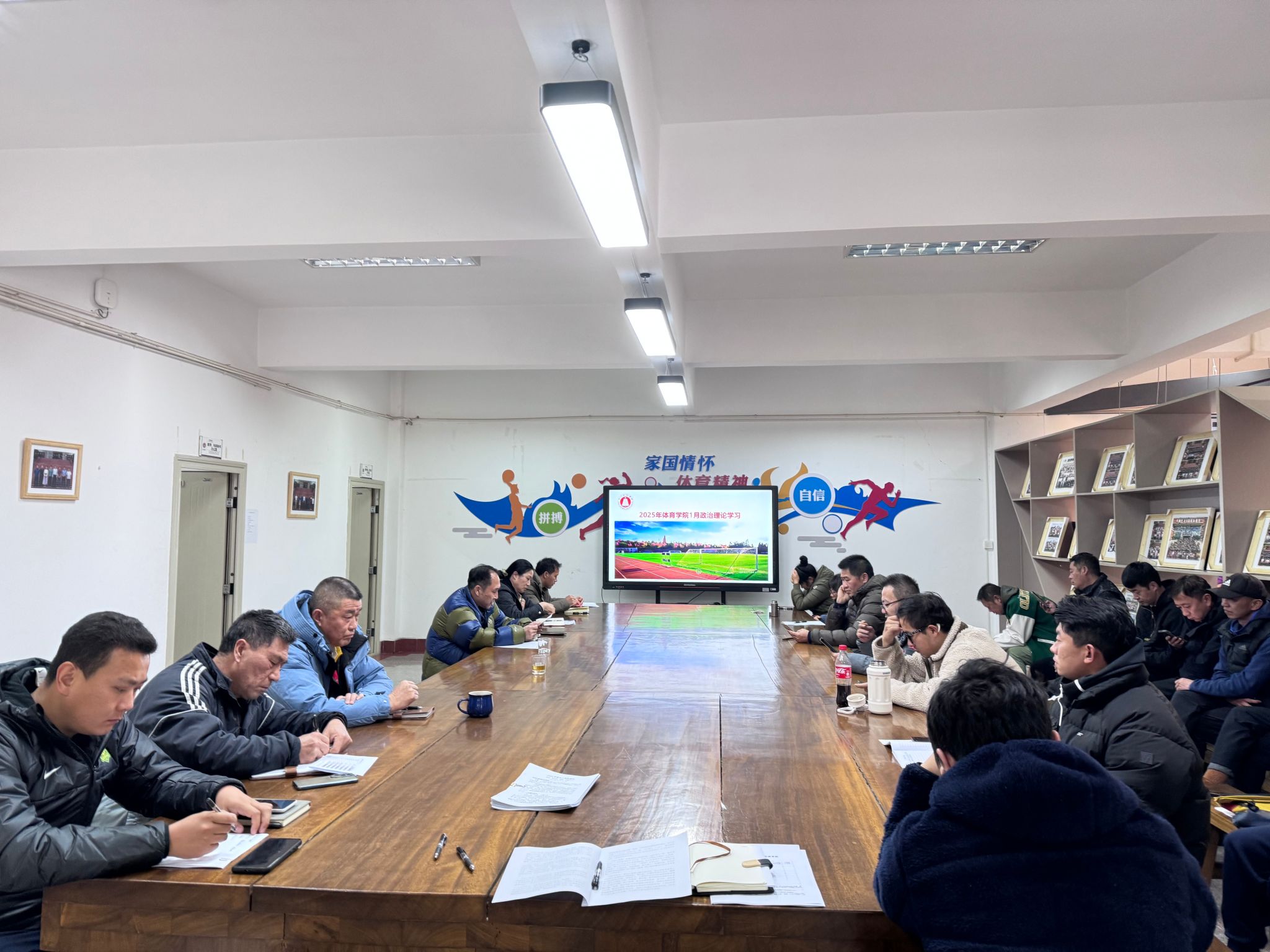2025年1月9日下午15:00点在体育学院办公区召开期末教职工大会暨政治理论学习会,党委书记杨志龙主持会议并传达学习习近平总书记在二十届中央纪委四次全会上发表重要讲话。学院全体教职工参加专题学习会。