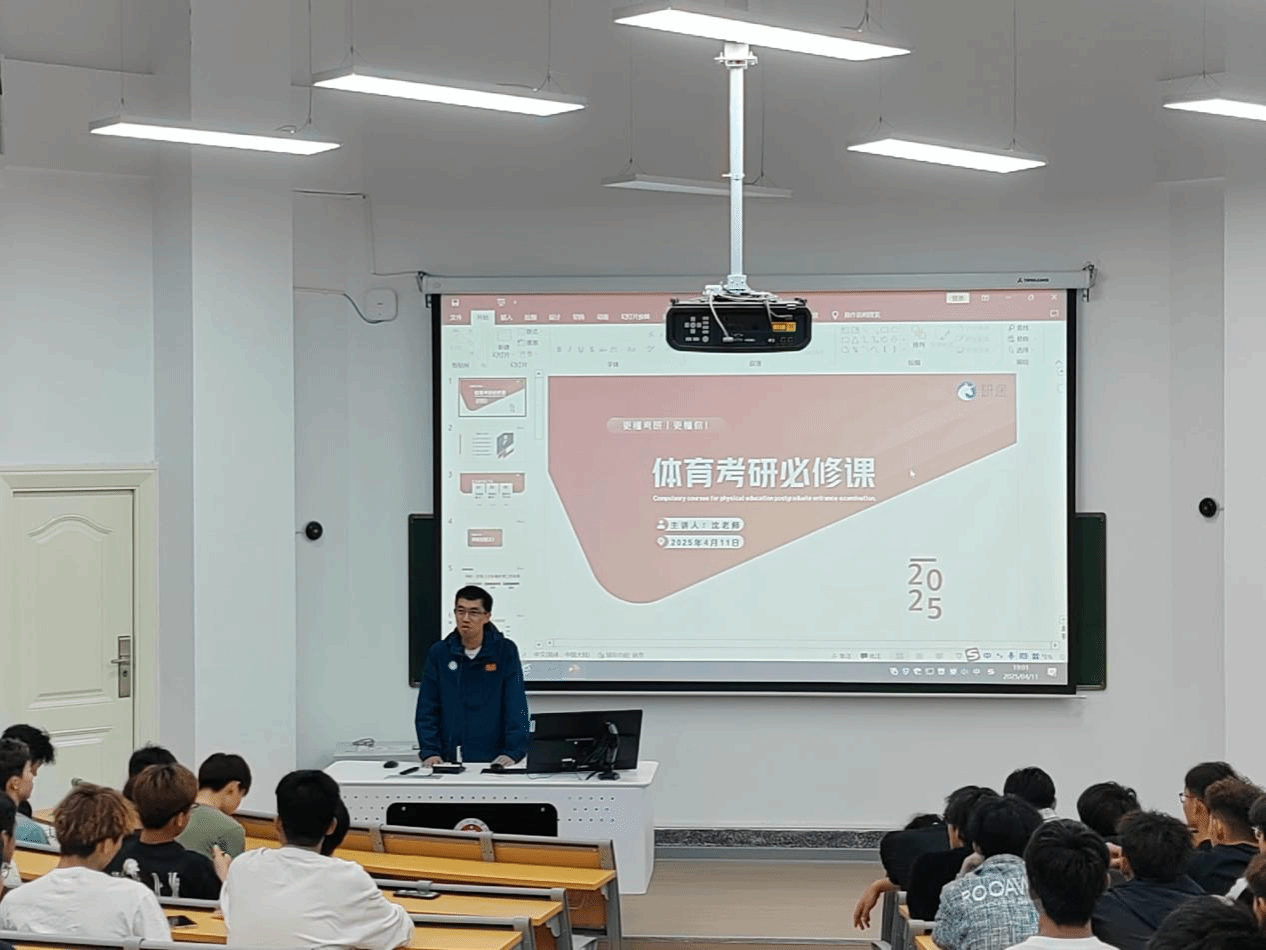 此次讲座邀请了研途考研沈老师进行讲解,他主要从体育考研的院校选择、考试的科目、以及考研必备的条件等方面进行讲解,并分享了如何制定科学合理的考研规划。