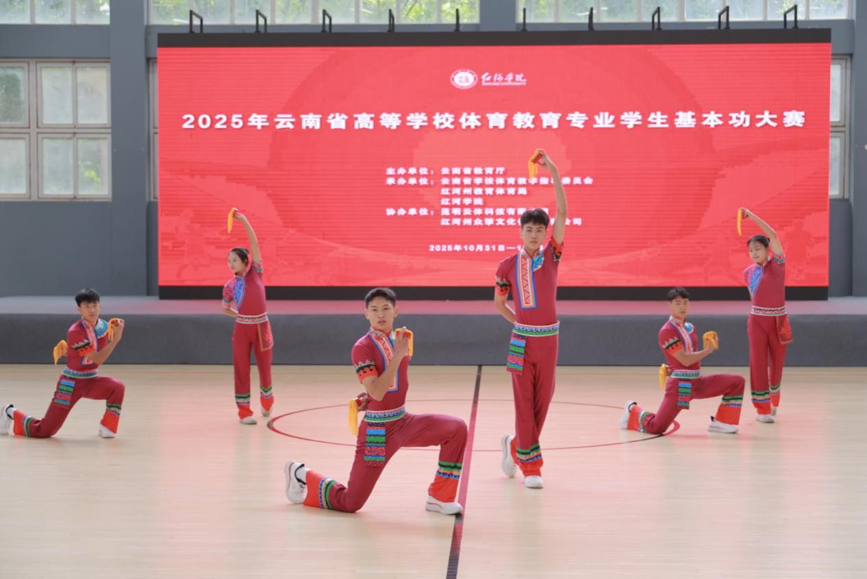 2025年11月3日,由云南省教育厅主办,云南省学校体育教学指导委员会、红河州教育体育局、红河学院共同承办的2025年云南省高等学校体育教育专业学生基本功大赛在红河学院圆满闭幕。本次比赛是全省高校体育教育专业领域级别最高、规模最大、影响最广的专业赛事,共有来自全省20所高校体育教育专业的120名学生同台竞技。