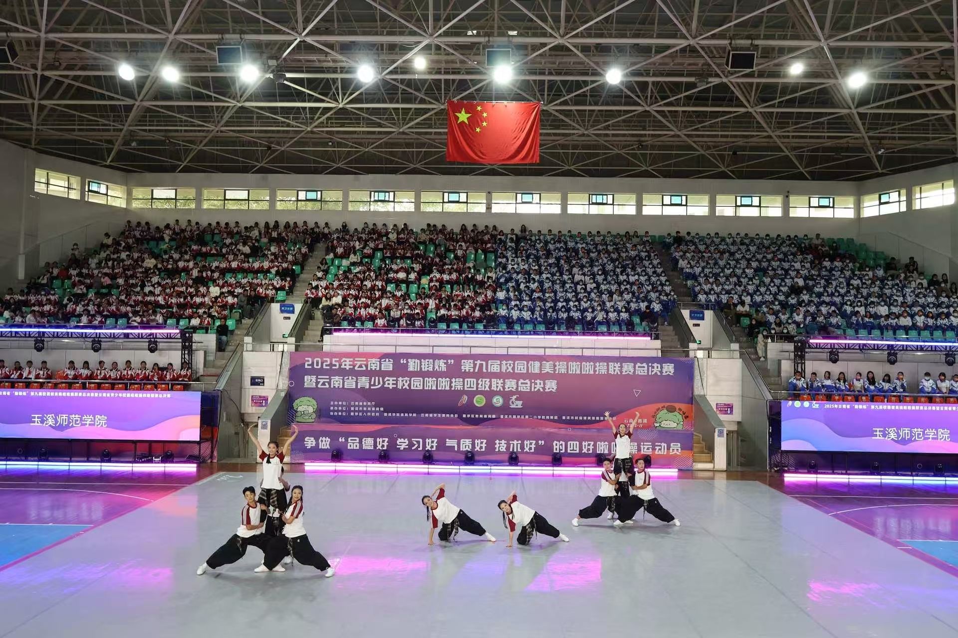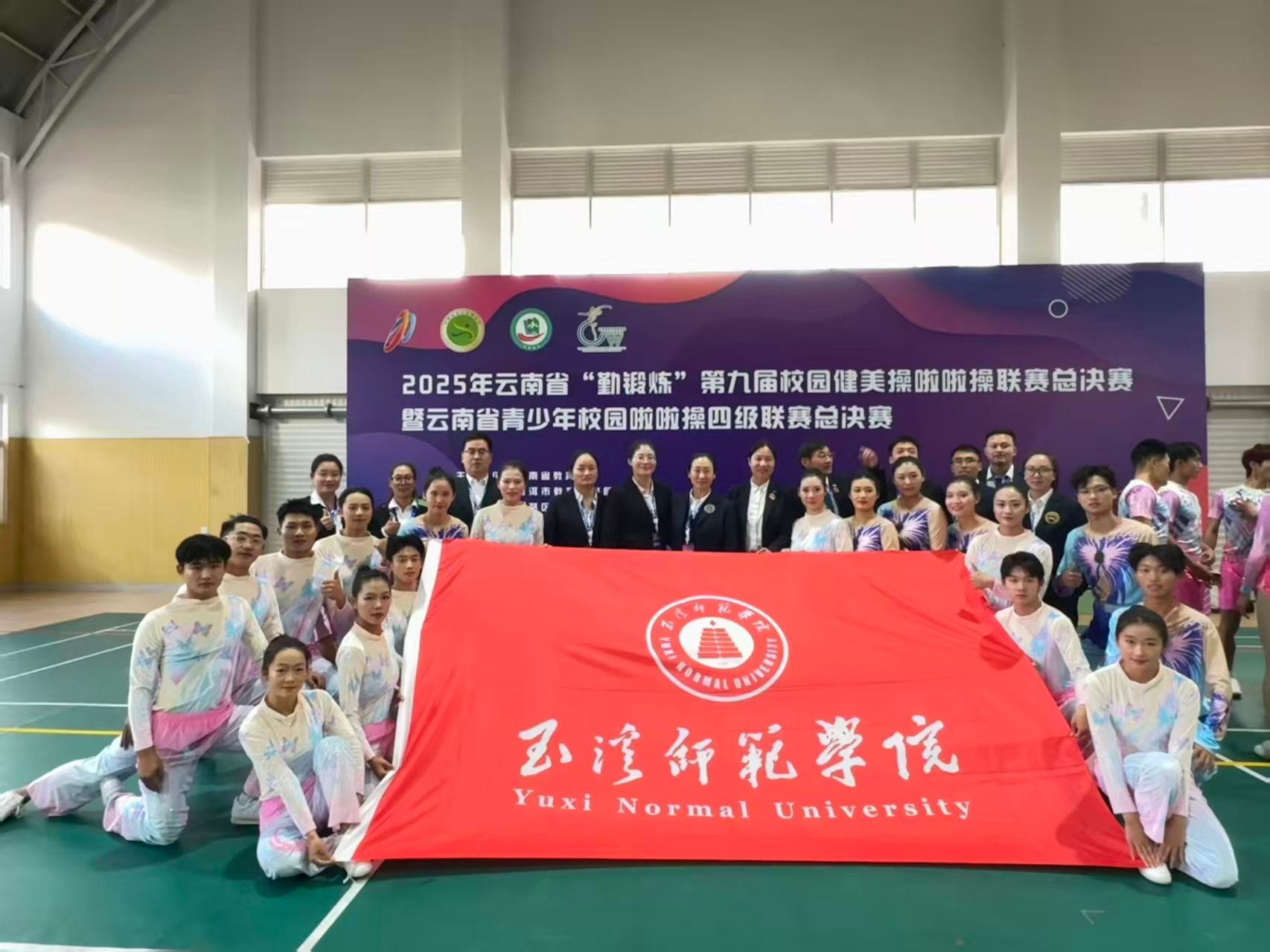 11月20日至24日,2025年云南省“勤锻炼”第九届校园健美操啦啦操联赛总决赛暨云南省青少年校园啦啦操四级联赛总决赛在普洱市思茅区举行。作为全省校园健美操啦啦操的顶尖赛事,本次联赛吸引了16个州(市)的295支队伍、6712名运动员同台竞技,赛场高手云集、竞争激烈。玉溪师范学院代表队在领队普春旺老师的统筹及教练员董丽波、相陆的精准指导下,凭借扎实的专业功底与稳定的竞技发挥一举斩获四项冠军,既展现了师院学子昂扬向上的青春活力,更彰显了体育学院在体育专业建设与人才培养领域的丰硕成果。
