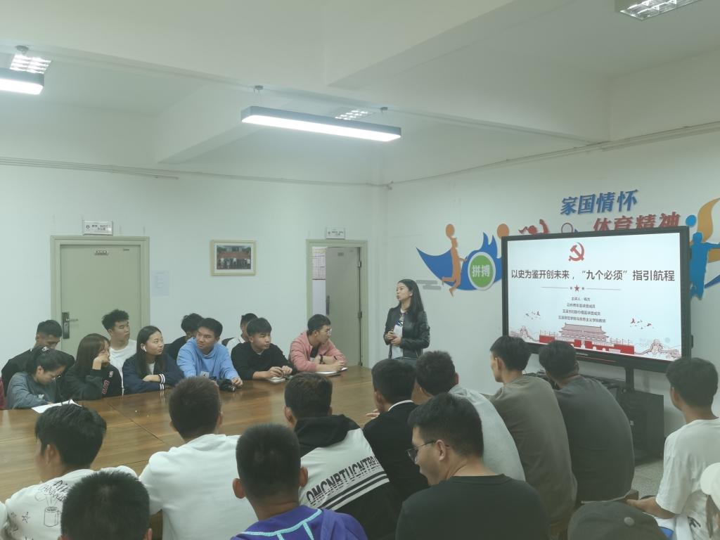 本次活动由玉溪师范学院党史学习教育宣讲团成员杨方老师主讲,杨老师紧扣“以史为鉴开创未来,“九个必须”指引航程”这一主题,结合实际为参加活动人员上了一堂党史课。