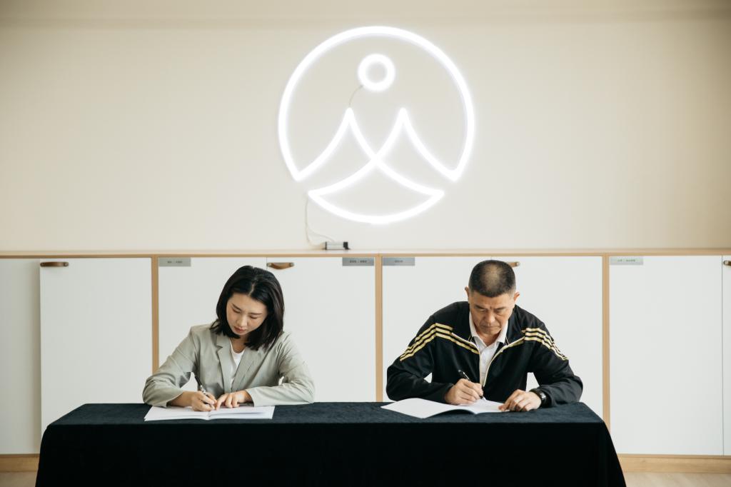最后,秘之境(玉溪市)瑜伽服务有限公司负责人谷虹锐与聂锐新院长代表双方在“玉溪师范学院体育学院校外协同教育实践基地合作协议书”上签字,并完成挂牌仪式。