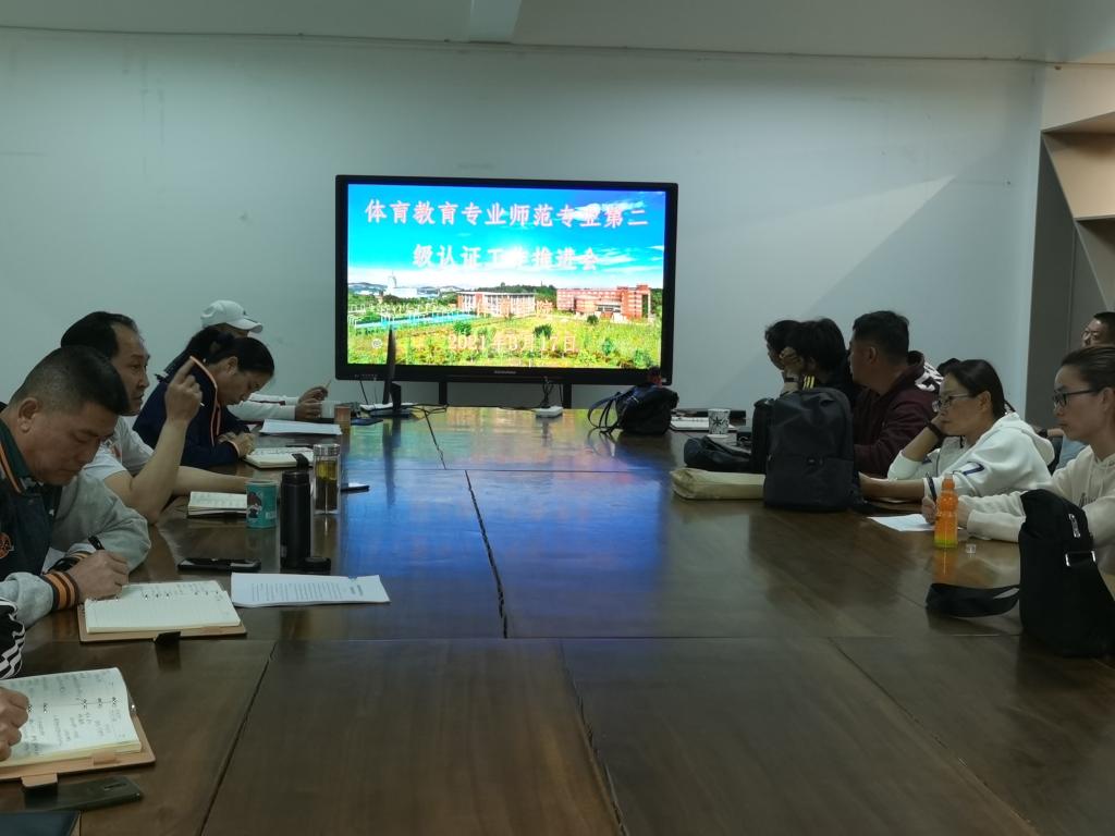 为推进体育教育专业认证工作有序进行,我院于2021年3月17日晚,在学院会议室召开专业认证推进会,布置相关安排。全学院教职工参加会议。体育学院院长聂锐新主任主持会议。